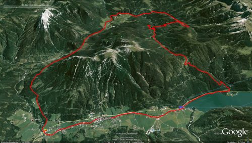 Im Tal angekommen ging es dann zunächst am wunderschönen Achensee entlang und über die Dörfer abseits der Hauptstrasse wieder zurück zum Parkplatz. Insgesamt also eine wunderschöne Tour mit toller Single-Trail Abfahrt in rot und einer Variante in Schwarz für die Könner!
