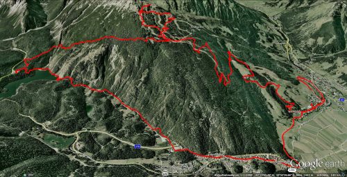 Dabei überquert man unbemerkt den Fernpasstunnel und kreuzt immer wieder die Seilbahn in der sich etliche Freerider hinauftransportieren ließen, um auf der Freeride-Strecke „Forrest Thunder“ ihren Spaß zu haben.