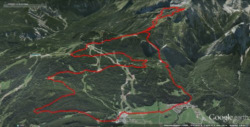 Super Strecke – Stufen/Treppen/Serpentinen-Übungstrail. Ein Streckenupdate – falls ich micht nicht verfahren habe. Wenn man nach dem Jägersteig das erste Mal wieder auf die Forststraße kommt/kreuzt (im Moment Riesenbaustelle) geht der gpx-Track in einen leicht zugewachsen alten Forstweg in den Wald und macht dann eine Rechtskurve. Dort ist Ende – der kleine Bach hat eine fast 3 Meter hohe/tiefe Rinne gefräst mit senkrechter Erdböschung. Lösung: Zurück auf die Forststraße – dieser etwas Richtung Garmisch (von unten links/von oben rechts folgen und dann nach ca 500 Meter links den Wanderweg nehmen.