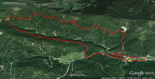 Anschließend rollten wir auf der Straße immer bergab wieder zurück zur Glashütte. Da es durch den verspäteten Start in der Früh schon etwas spät war, schenkten wir uns eine zweite Auffahrt, verluden die Bikes in die Autos und fuhren nach Lenggries ins Café Schwarz wo wir uns zum Abschluß noch einen Kaffee und ein Stück Kuchen gegönnt haben.