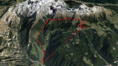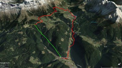 des Konzerts (es begann schon wieder zu tröpfeln 🙁 ) fuhren wir dann auf den schon vom Donnerstag bekannten Trails wieder zurück nach Welschnofen. Und natürlich kam es wie es kommen musste: Auch heute regnete es gegen Abend wieder in Strömen und so kamen wir ein weiteres Mal völlig durchnäßt in unserer Pension an (nur gut, dass ich zwei Paar Bike-Schuhe dabei hatte – so konnte ich wenigstens wechseln).
