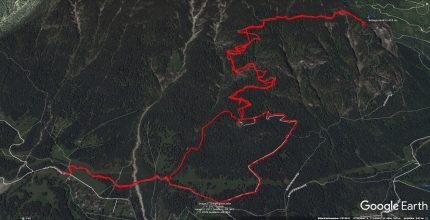 Kurz vor der St. Martinhütte bogen wir dann rechts in den unscheinbaren Pfad ab, der auf direktem Weg z.T. ziemlich steil und mit ein paar unfahrbaren Stellen direkt in südlicher Richtung wieder hinunter auf den Kramerplateauweg führt.