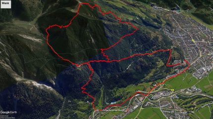 Eine knappe halbe Stunde später machten wir uns schließlich wieder fertig für die Abfahrt und fuhren auf dem süd-west seitigen Bergpfad, z.T. unterhalb der Wank-Bahn über viele Holz-Stufen wieder bergab bis zur Mittelstation. Von hier folgten wir dem Hüttlsteig wieder Richtung Norden, bogen auf ca. 1.170 m links in einen wunderschönen Waldpfad ein (Achtung! Sehr sensibler Pfad – keine Bremsspuren!!!), der uns wieder hinunter auf die Forststraße führte, die wir heraufgefahren waren.