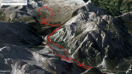 Nach einer angenehmen Nacht und einem guten Frühstück stand am nächsten Tag eine Explorer-Tour auf dem Programm. Wir wollten von der Lavarella-Hütte hinauf zur Lavarella-Scharte und evtl. weiter auf den Piz Zuber. Um viertel vor 9 starteten wir die bereits vom Vortag bekannte Auffahrt Richtung Fanes-Hütte, bogen jedoch kurz vor dieser rechts ab Richtung Lavarella-Hütte. Dort gönnten wir uns wieder einen Cappuccino und fragten einen Local nach dem empfohlenen Aufstiegsweg, da es zwei Varianten zur Scharte gibt.